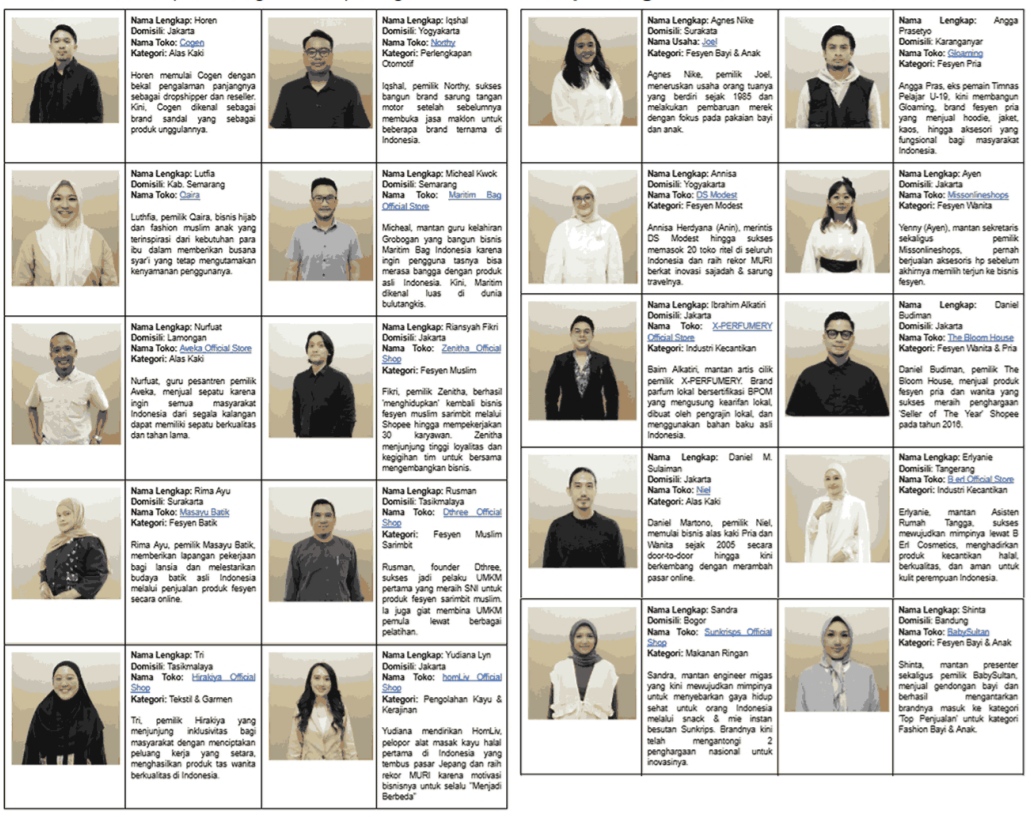 Berikut ini adalah profil singkat dari peringkat 20 besar Shopee Jagoan UMKM Naik Kelas:
